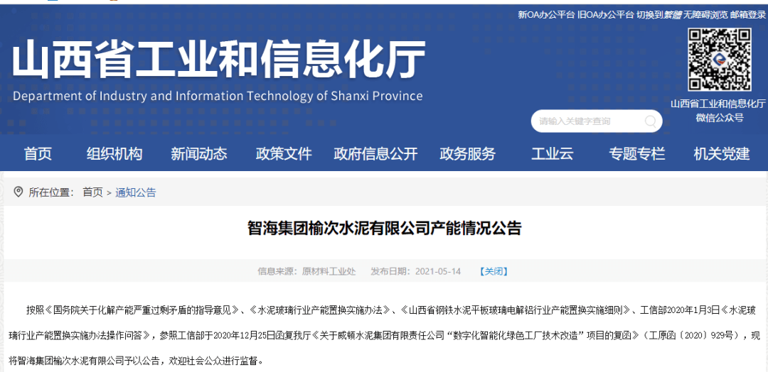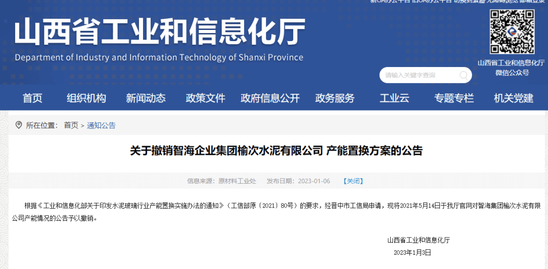 無(wú)獨(dú)有偶,山西省工信廳也于近期發(fā)布了一則撤銷(xiāo)公告,稱(chēng)根據(jù)《工業(yè)和信息化部關(guān)于印發(fā)水泥玻璃行業(yè)產(chǎn)能置換實(shí)施辦法的通知》(工信部原〔2021〕80號(hào))的要求,經(jīng)晉中市工信局申請(qǐng),并將2021年5月14日于山西工信廳官網(wǎng)對(duì)智海集團(tuán)榆次水泥有限公司產(chǎn)能情況的公告予以撤銷(xiāo)。
