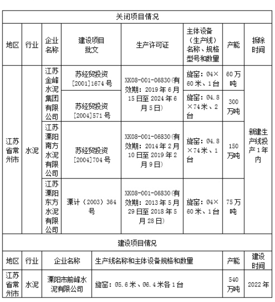 2022年4月江蘇省工信廳發(fā)布了關(guān)于撤銷(xiāo)溧陽(yáng)市前峰水泥有限公司搬遷建設(shè)水泥熟料生產(chǎn)線方案的公告稱(chēng),江蘇省工信廳于2021年8月5日對(duì)溧陽(yáng)市前峰水泥有限公司搬遷建設(shè)水泥熟料生產(chǎn)線方案進(jìn)行了公告,予以撤銷(xiāo)。