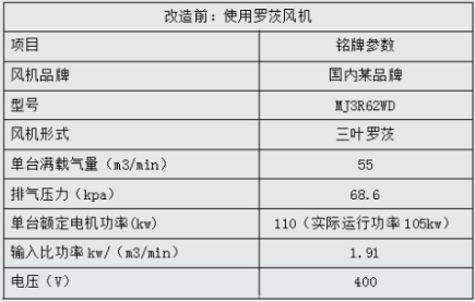 改造前風機參數(shù)