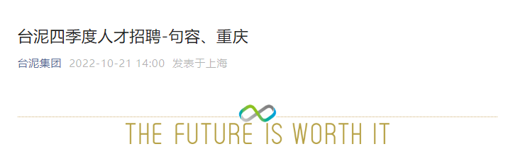 臺泥集團人才招募頻道也最近更新的消息是2022年四季度句容臺泥招聘化學(xué)分析技術(shù)員、車輛工程技術(shù)員,重慶臺泥招聘DCS技術(shù)員、工藝技術(shù)員四個崗位。