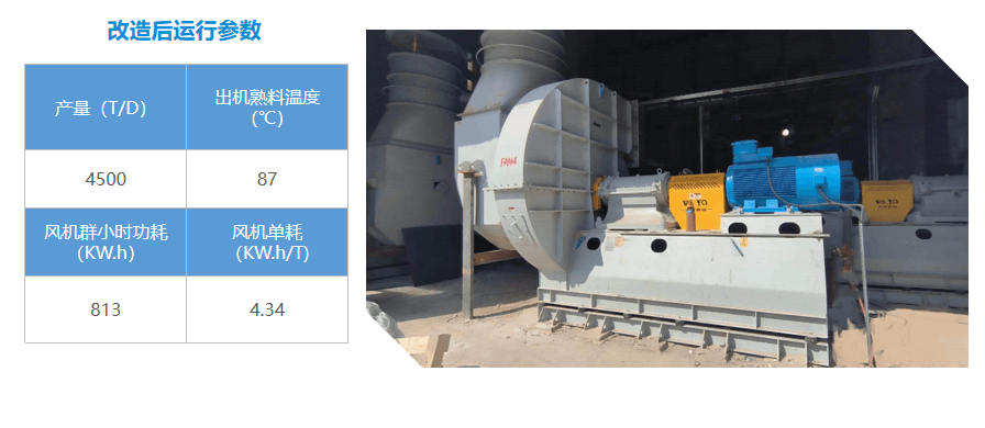 該企業(yè)裝備5條日產(chǎn)5000噸規(guī)模的熟料生產(chǎn)線,2022年推進(jìn)的C線篦冷機(jī)改造中廠家選用沃亞機(jī)械的高效篦冷機(jī)冷卻風(fēng)機(jī),投入運(yùn)行5個(gè)月時(shí)間,通過雙方技術(shù)標(biāo)定,本項(xiàng)目冷卻風(fēng)機(jī)運(yùn)行效率高(風(fēng)機(jī)群整體運(yùn)行效率>83.5%),冷卻電耗表現(xiàn)非常優(yōu)異,風(fēng)機(jī)效率優(yōu)勢(shì)明顯,達(dá)到同型號(hào)篦冷機(jī)冷卻風(fēng)機(jī)電耗優(yōu)秀水平。