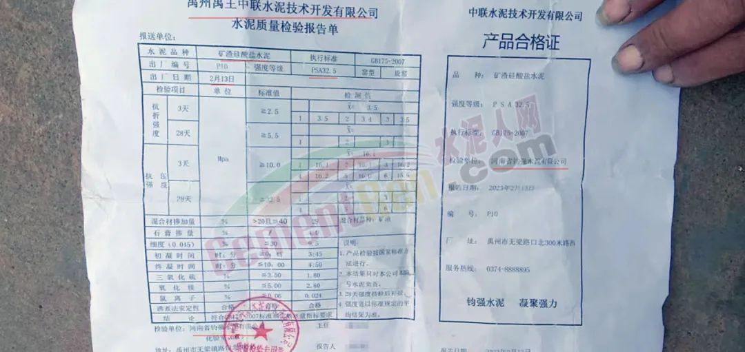 日前,河南省南陽市某建材門市向水泥人網(wǎng)反映:“許昌禹州禹王中聯(lián)(PSA32.5)袋重不足,廠方所提供的質(zhì)量檢驗報告單與攪拌站所測數(shù)值,相差甚遠(yuǎn)”。