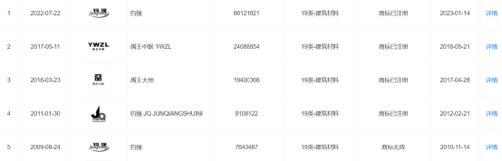 河南省鈞強水泥有限公司注冊商標(biāo)圖片當(dāng)前狀態(tài)為已注冊,有效期內(nèi)。且同時擁有“鈞強、禹王大地”等多個注冊商標(biāo)。