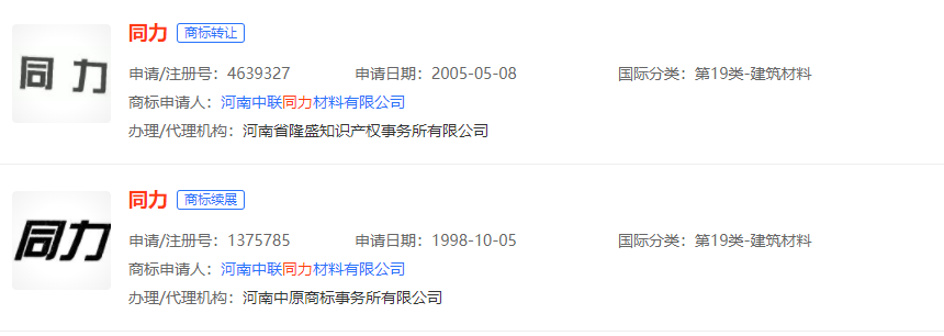 另一款,標(biāo)稱(chēng)生產(chǎn)企業(yè)為河南省安陽(yáng)市水泥有限公司的“同力”水泥,工商注冊(cè)信息中查無(wú)此單位。擁有同力商標(biāo)的企業(yè)為河南中聯(lián)同力材料有限公司,而非上述企業(yè)。