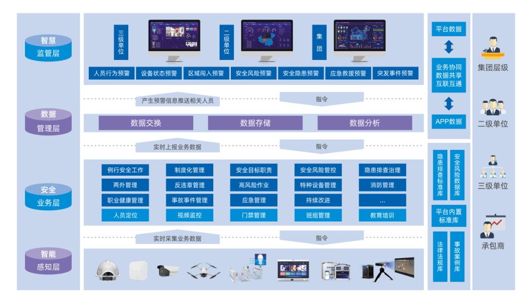 通過構(gòu)建集團、二級單位和三級單位統(tǒng)一應用平臺,實現(xiàn)“安全管理數(shù)據(jù)”上下貫通、左右協(xié)同。