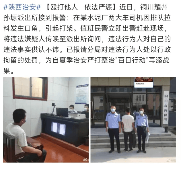 銅川耀州孫源派出所接到報警,在某水泥廠兩大車司機排隊拉料發(fā)生口角,引起打架。
