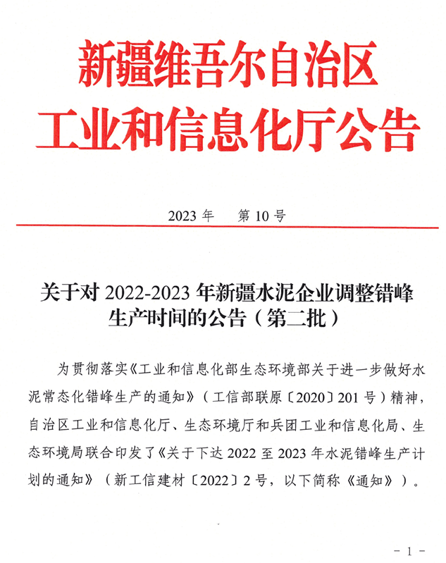 日前,新疆維吾爾自治區(qū)工信廳發(fā)布公告文件公開(kāi)通報(bào)新疆天基水泥有限公司、博海水泥有限公司未遵守《通知》相關(guān)規(guī)定,擅自在錯(cuò)峰時(shí)間開(kāi)窯。自治區(qū)工信廳、生態(tài)環(huán)境廳已責(zé)成當(dāng)?shù)毓ば?、生態(tài)環(huán)境部門(mén)立即制止上述兩家公司違規(guī)行為,進(jìn)行通報(bào)批評(píng)并予以處罰,同時(shí)責(zé)成企業(yè)在 2023 年非錯(cuò)峰生產(chǎn)期間補(bǔ)足違規(guī)開(kāi)窯天數(shù)。