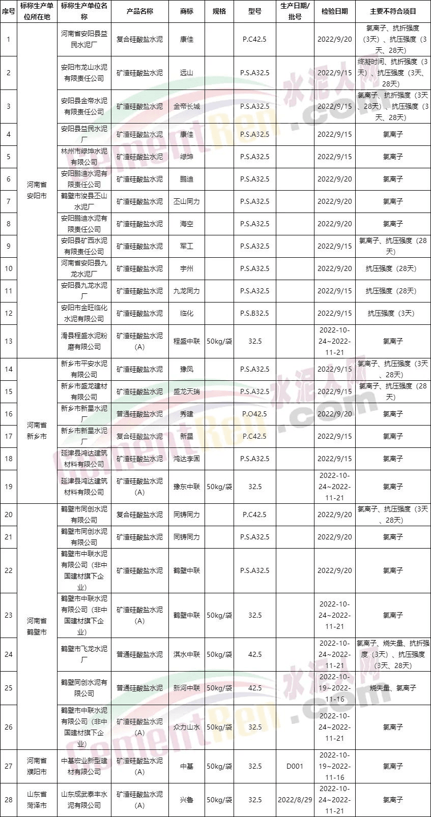 水泥質(zhì)量萬里行組委會(huì)此前通報(bào)的2022年水泥質(zhì)量抽檢結(jié)果顯示,菏澤及豫北區(qū)域共抽檢43批次不合格水泥,其中28批次不合格,合格的產(chǎn)品僅15批次,不合格率達(dá)到了驚人的65.1%。