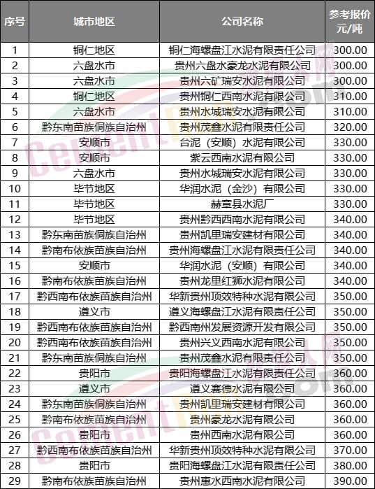 終止“價(jià)格戰(zhàn)”,海螺、紅獅、臺泥等主要品牌企業(yè)在貴州協(xié)調(diào)較好