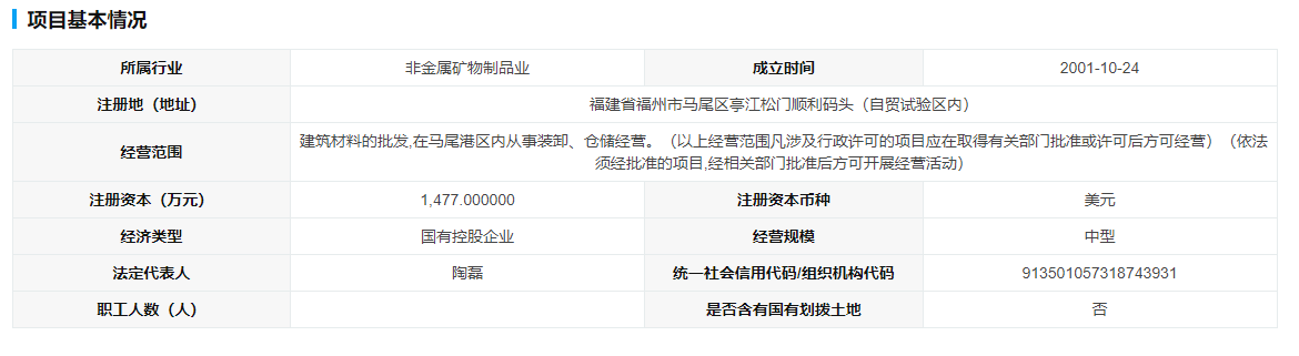 華潤水泥(福州)有限公司企業(yè)地址位于福建省福州市馬尾區(qū)亭江松門順內(nèi)從事裝卸、倉儲經(jīng)營等。