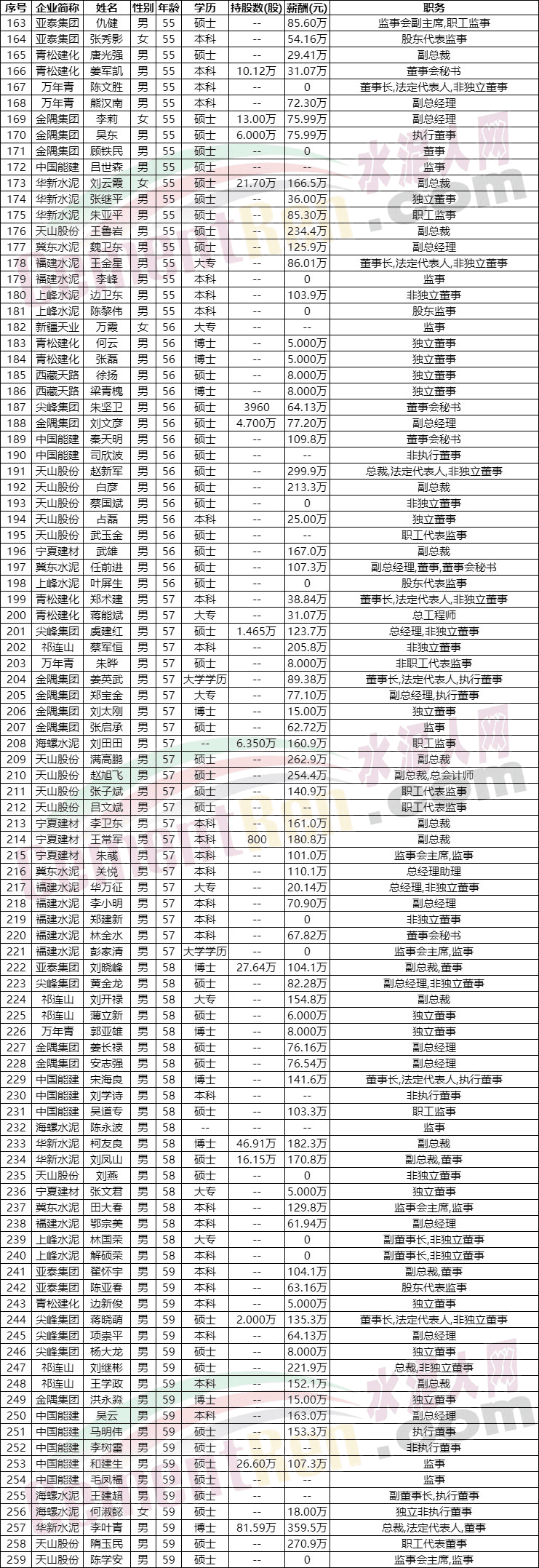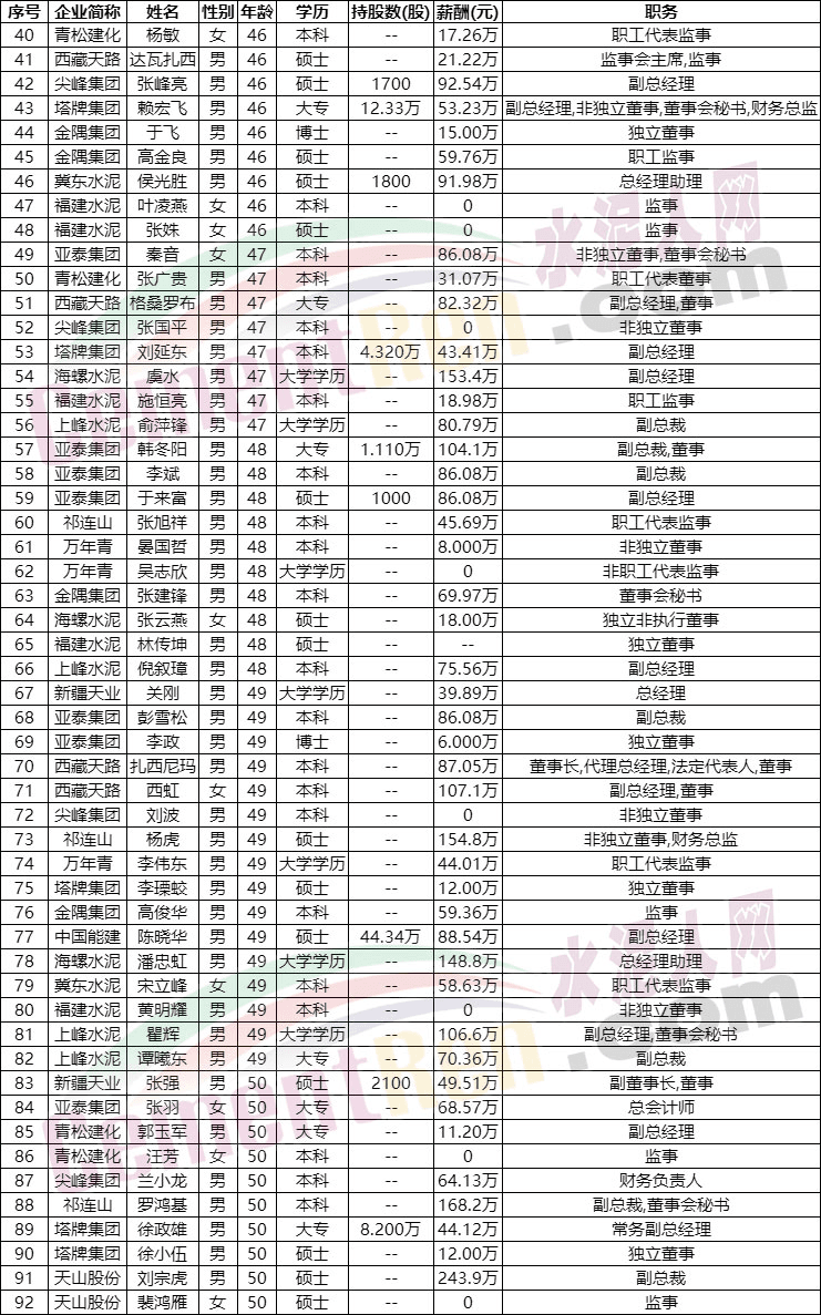水泥行業(yè)近五年內將有近100位高管退休