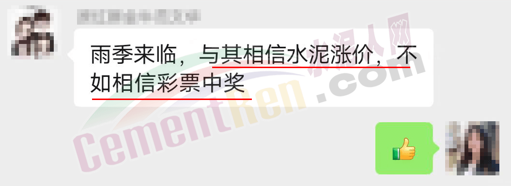 對于水泥企業(yè)復(fù)價(jià)上調(diào),一經(jīng)銷商調(diào)侃稱,雨季來臨,與其相信水泥漲價(jià),不如相信彩票中獎(jiǎng)。