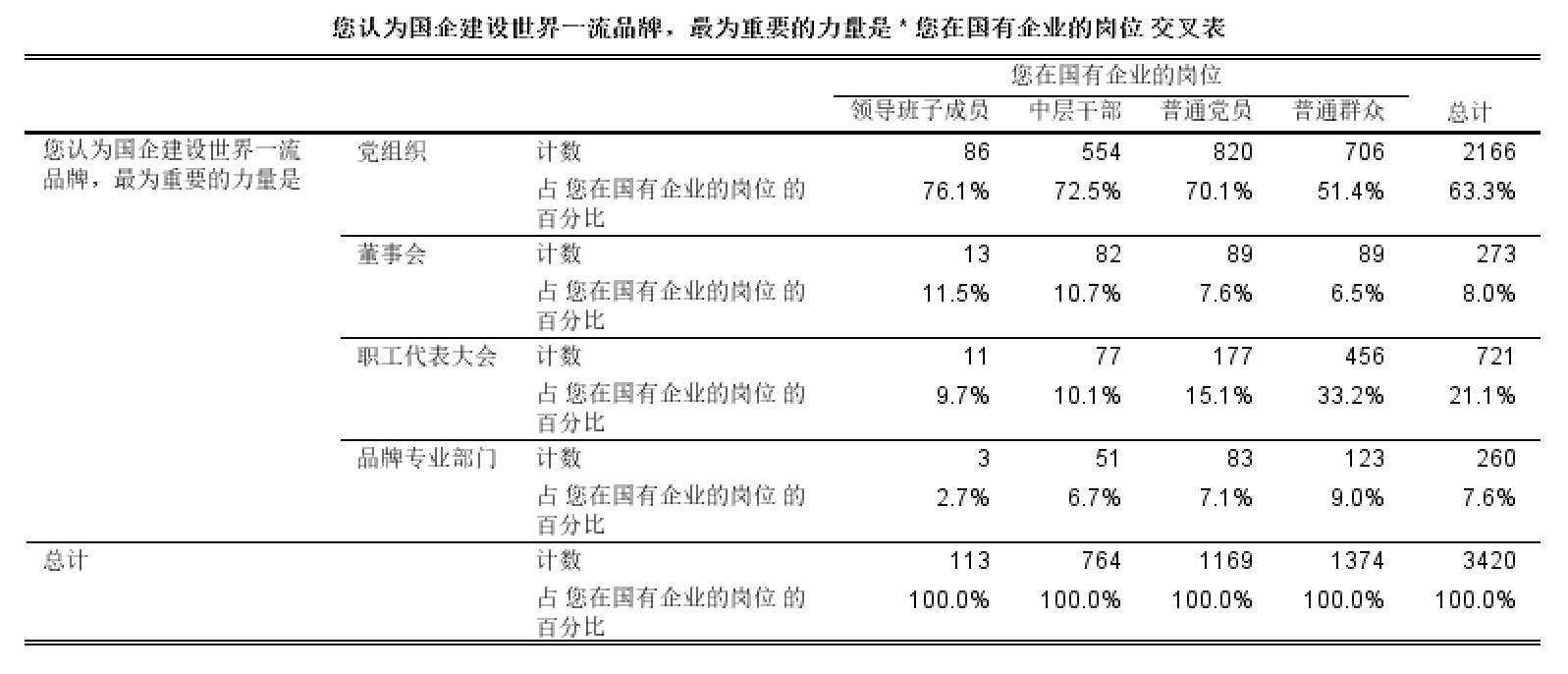 為更加全面了解我國(guó)國(guó)有企業(yè)黨組織領(lǐng)導(dǎo)打造世界一流品牌的現(xiàn)狀,本課題組采用問(wèn)卷調(diào)查法,面向多個(gè)中央企業(yè)和地方國(guó)企的職工發(fā)放了3420份問(wèn)卷,并結(jié)合學(xué)界研究成果和調(diào)研結(jié)果,總結(jié)出當(dāng)前國(guó)企黨組織領(lǐng)導(dǎo)打造世界一流品牌的成就以及存在的問(wèn)題。