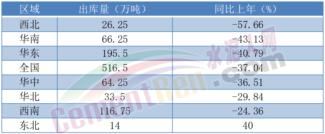 相關(guān)數(shù)據(jù)顯示,近期全國水泥出庫量在500多萬噸,同比上年同期下跌近四成,其中基建水泥同比下降約15%左右。同比降幅最大的為西北區(qū)域降幅近60%。其次是華南、華東等區(qū)域。