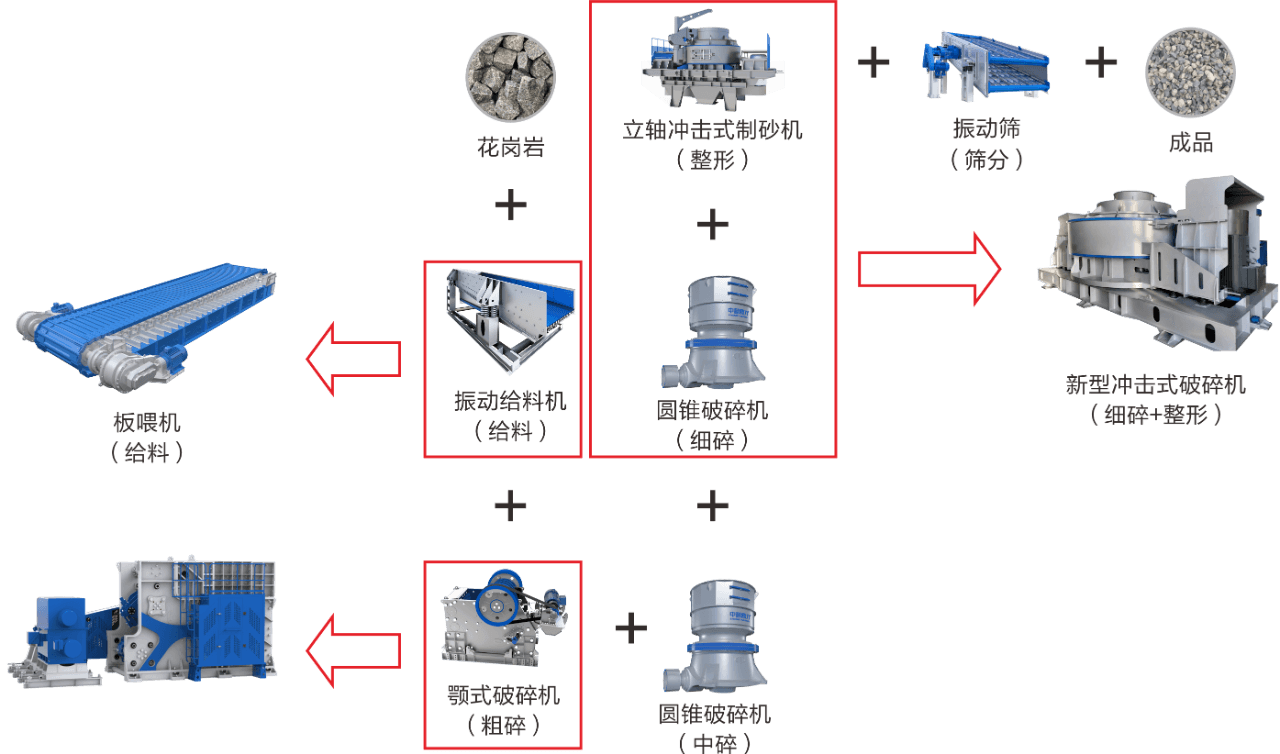 破碎生產(chǎn)線的應用廣泛,涵蓋建筑、交通、水利、基礎設施、水泥等多個領域,可根據(jù)需要生產(chǎn)出符合特定要求的砂石骨料產(chǎn)品,為各個行業(yè)的發(fā)展提供了重要的支持。然而,因為硬巖的特性,設備臺數(shù)多、工藝流程長、破碎難度大、項目投資高等問題,一直是困擾砂石投資者的問題之一。