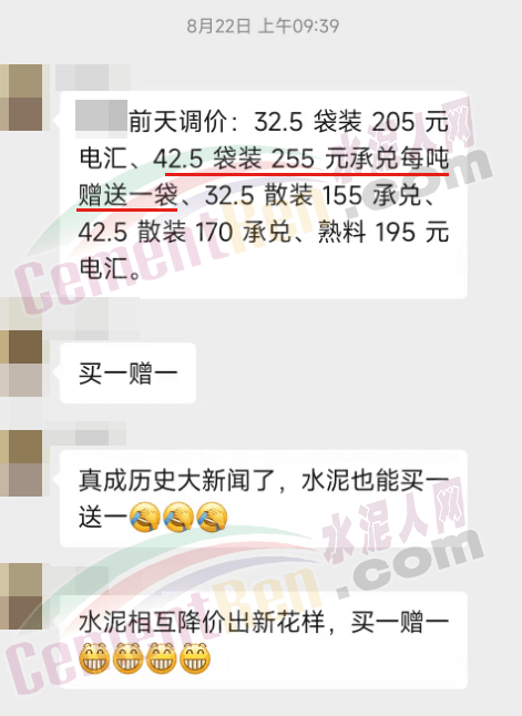 近來各區(qū)域水泥價格呈持續(xù)下滑態(tài)勢,流通領(lǐng)域水泥報價已跌至200元/噸以下,遼寧某企業(yè)P.O42.5散裝水泥承兌報價低至170元/噸,現(xiàn)金價160元/噸左右,且公開表示“買一噸送一包”。這個報價距離2015年的市場最低價140元/噸,僅差一份降價通知。