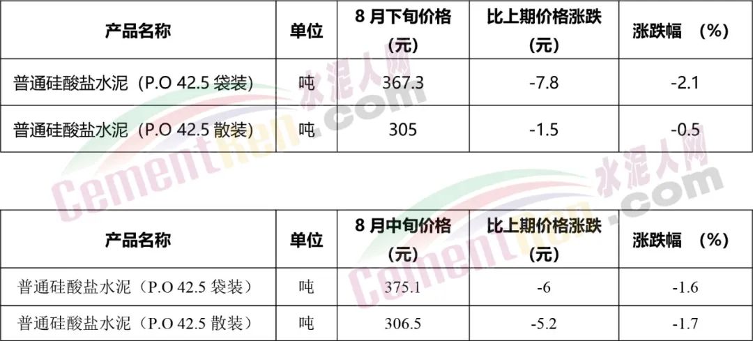 8月11日,河南鄭州水泥價格上調(diào)30元/噸;