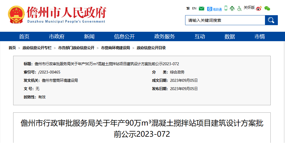 近日,儋州市人民政府公布《儋州市行政審批服務局關于年產(chǎn)90萬m³混凝土攪拌站項目建筑設計方案批前公示》。公告顯示,儋州明成水泥有限公司擬建年產(chǎn)90萬m³混凝土攪拌站項目,新建一棟1層的攪拌站倉庫、一棟3層的攪拌站主樓。