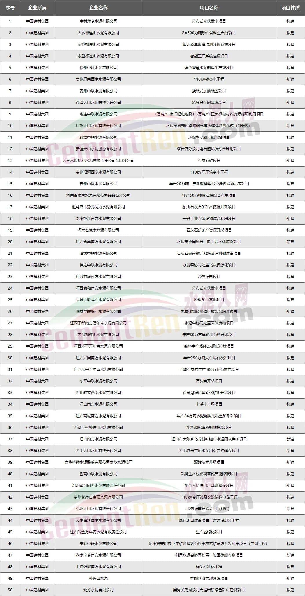 中建材集團:新建擬建項目共50個