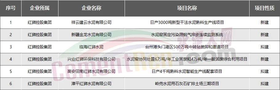紅獅水泥:新建擬建項目共6個
