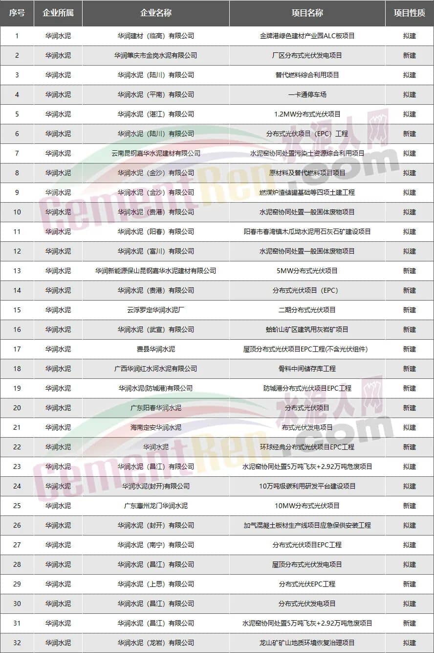 華潤水泥:新建擬建項目共32個