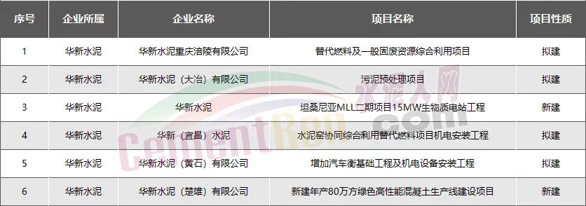 華新水泥:新建擬建項目共6個