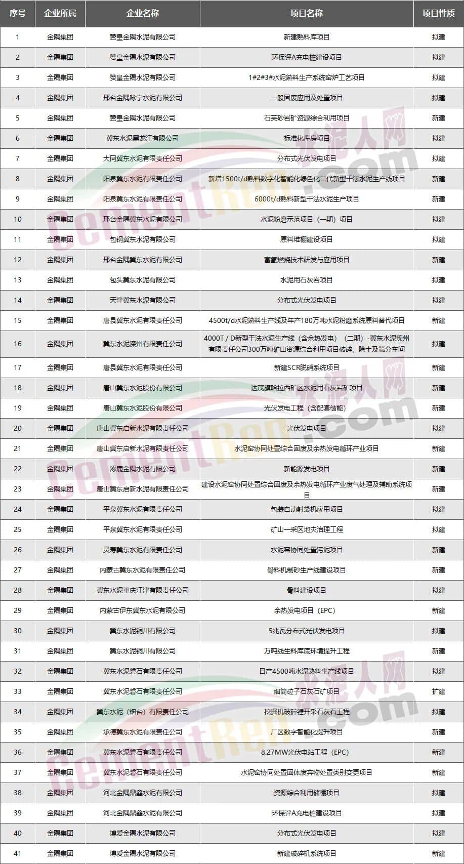 金隅集團:新建擬建項目共41個