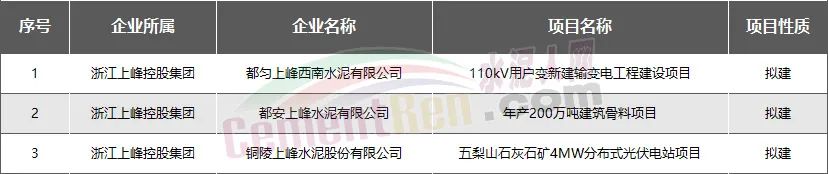 浙江上峰控股集團:新建擬建項目共3個