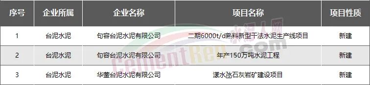 臺泥集團:新建擬建項目共3個