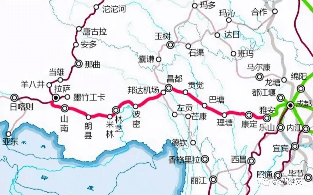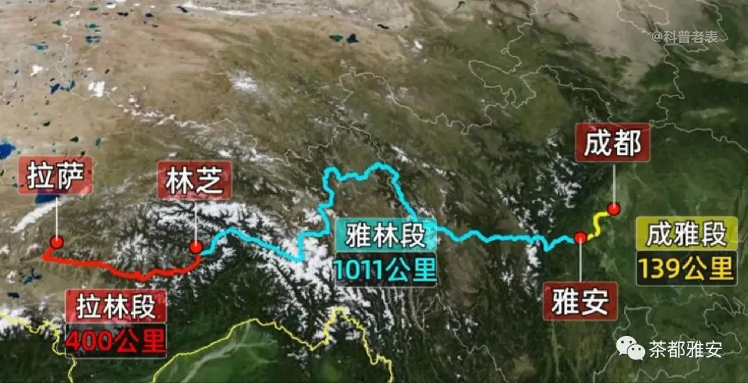川藏鐵路從成都到拉薩,可以分成三段來看。成都到雅安的成雅段,長140公里,雅安到林芝的雅林段,長1010公里,拉薩到林芝的拉林段,長400公里。成雅段和拉林段已建成通車,剩下中間的雅林段于2020年11月初開工建設,工期預計為10年,2032年左右雅林段將全線通車,設計時速為120~200公里/小時。