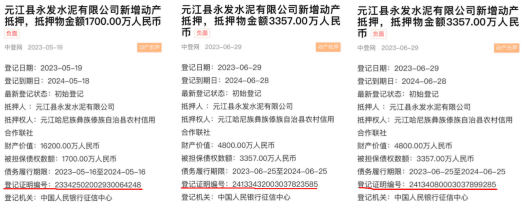 同時,低價傾銷并沒占到所謂“便宜”,在環(huán)保持續(xù)加壓、煤炭成本居高的當(dāng)下,永發(fā)水泥已經(jīng)出現(xiàn)資金捉襟見肘狀況,據(jù)公開信息,僅2023年,永發(fā)水泥動產(chǎn)抵押3次用來補充流動資金,抵押物總金額8400余萬元。