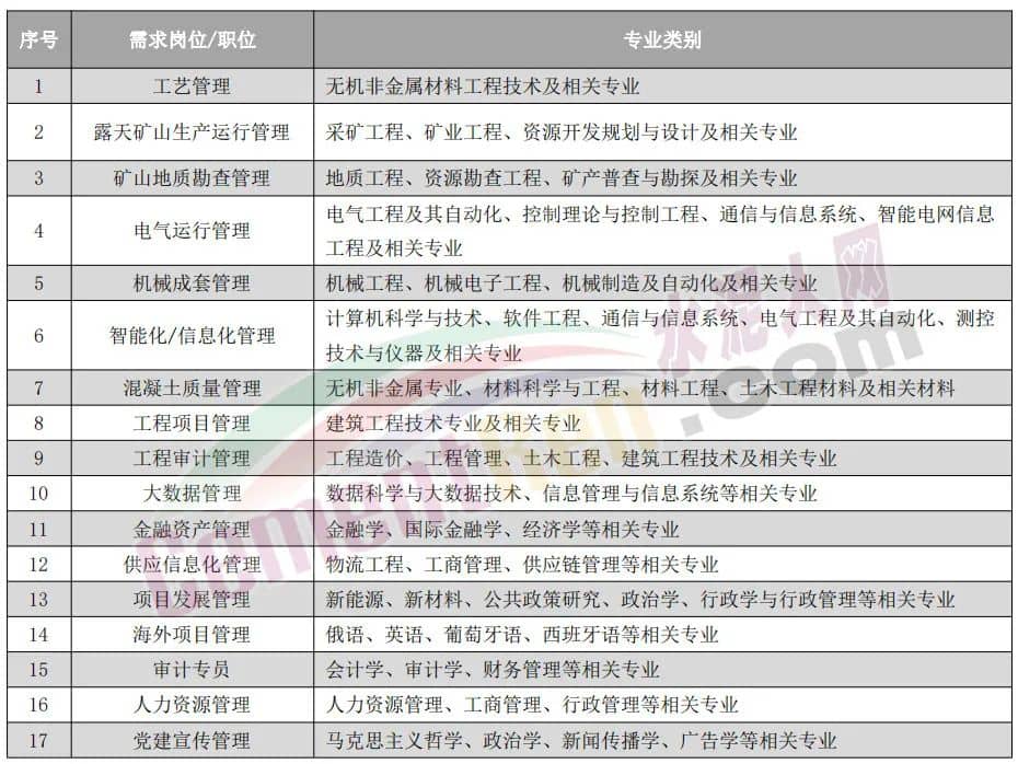 日前,安徽省大中專畢業(yè)生就業(yè)指導(dǎo)中心官網(wǎng)發(fā)布了《海螺水泥2024年秋季校園招聘簡章》招聘崗位包含工藝管理、露天礦山生產(chǎn)運行管理、礦山地質(zhì)勘查管理、電氣運行管理、機械成套管理、智能化/信息化管理、混凝土質(zhì)量管理、金融資產(chǎn)管理、供應(yīng)信息化管理、項目發(fā)展管理、海外項目管理等多個崗位。