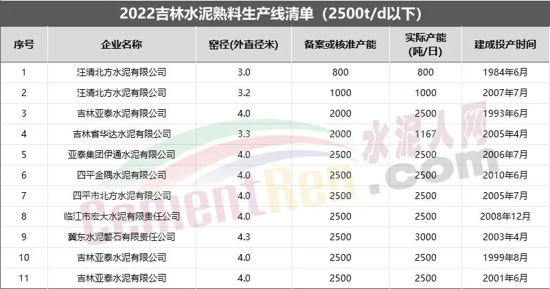 吉林要求2025年底前通過省內(nèi)產(chǎn)能置換,逐步退出2500t/d以下熟料生產(chǎn)線