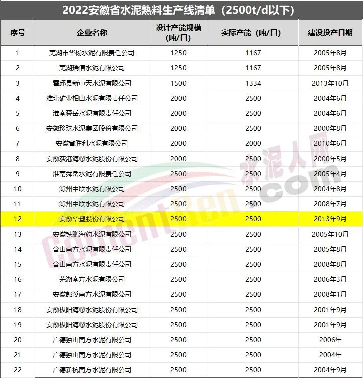 相關業(yè)內(nèi)分析人士表示,“十四五”期間無論是從水泥熟料單位產(chǎn)品綜合能耗水平還是從設備技術指標、區(qū)域產(chǎn)能集中度、產(chǎn)能過剩程度來考量,對2500t/d及以下熟料生產(chǎn)線都是“生死”考驗。從已經(jīng)發(fā)布2022年熟料生產(chǎn)線清單的24個省市地區(qū)來看,除特種水泥生產(chǎn)線外在產(chǎn)2500t/d及以下熟料生產(chǎn)線共600多條。