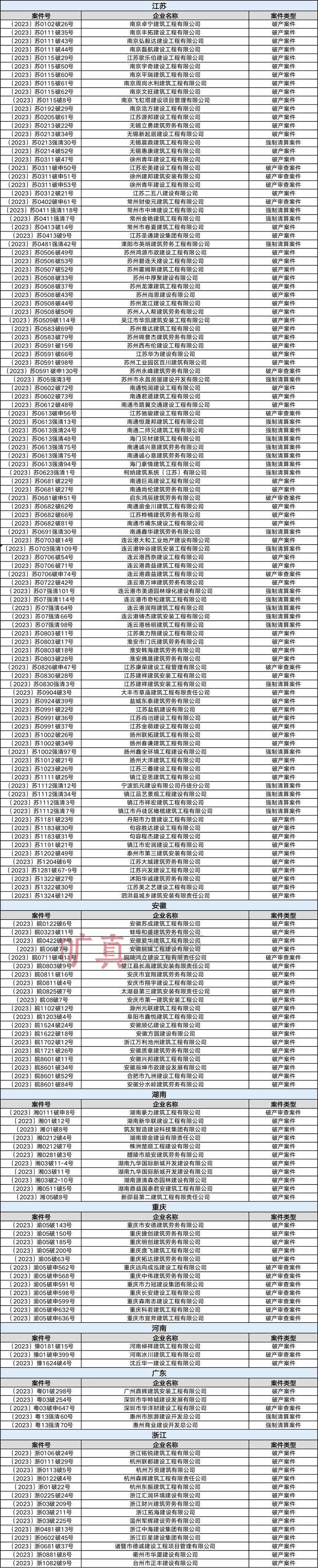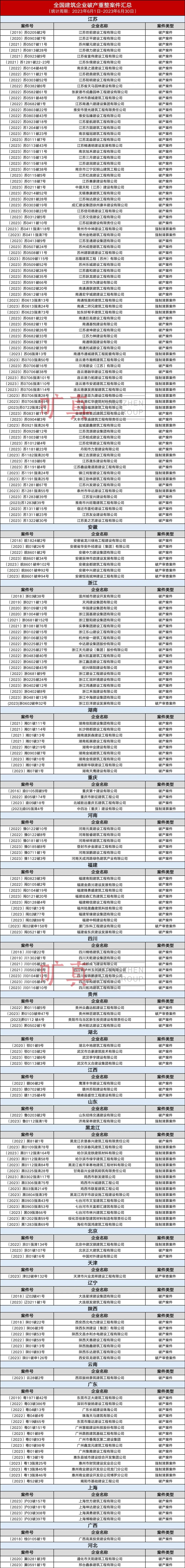 2023年6月全國(guó)建筑企業(yè)破產(chǎn)重整案件匯總
