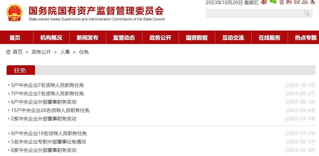近期,國資委網(wǎng)站連發(fā)多條央企人事變動消息。截至目前,年內(nèi)央企人事變動已經(jīng)涉及56戶企業(yè),多位領(lǐng)導到年齡退休。