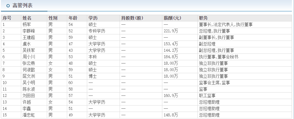 水泥人網(wǎng)注意到,海螺水泥上市公司高管列表15位高管中有9位年齡在50-60歲之間,占比達60%。其中包括董事長楊軍,副董事長王建超,董秘周小川,總經(jīng)理李群峰,總經(jīng)理助理許越等人。監(jiān)事暨監(jiān)事會主席吳小明已于今年9月26日遞交了書面辭職報告,因其已達到法定退休年齡,申請辭去監(jiān)事會主席暨監(jiān)事職務。