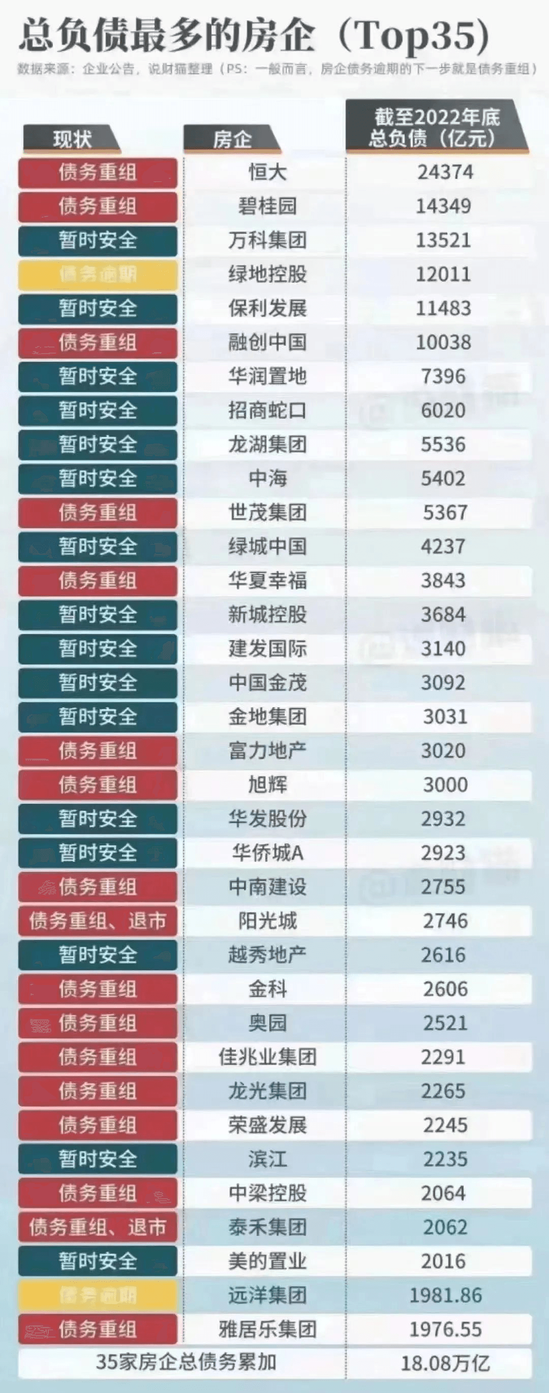 圖:總負債最多的房企(TOP35)
