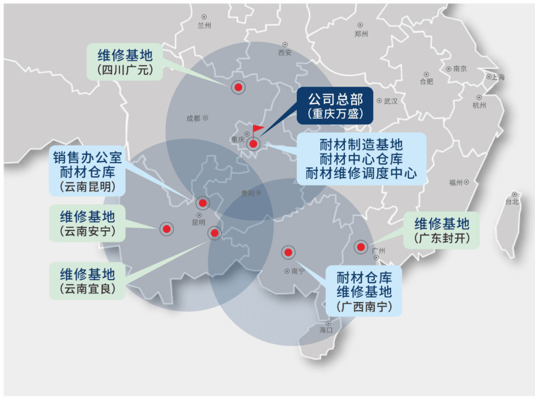 據(jù)水泥人網(wǎng)了解,重慶良友總部設(shè)在重慶萬盛,同時設(shè)立耐材制造基地、耐材中心倉庫和耐材維修調(diào)度中心。且同步在四川廣元、云南宜良、安寧、廣西南寧、廣東封開分別建立了維修基地。在云南昆明、廣西南寧設(shè)立了耐材倉庫。