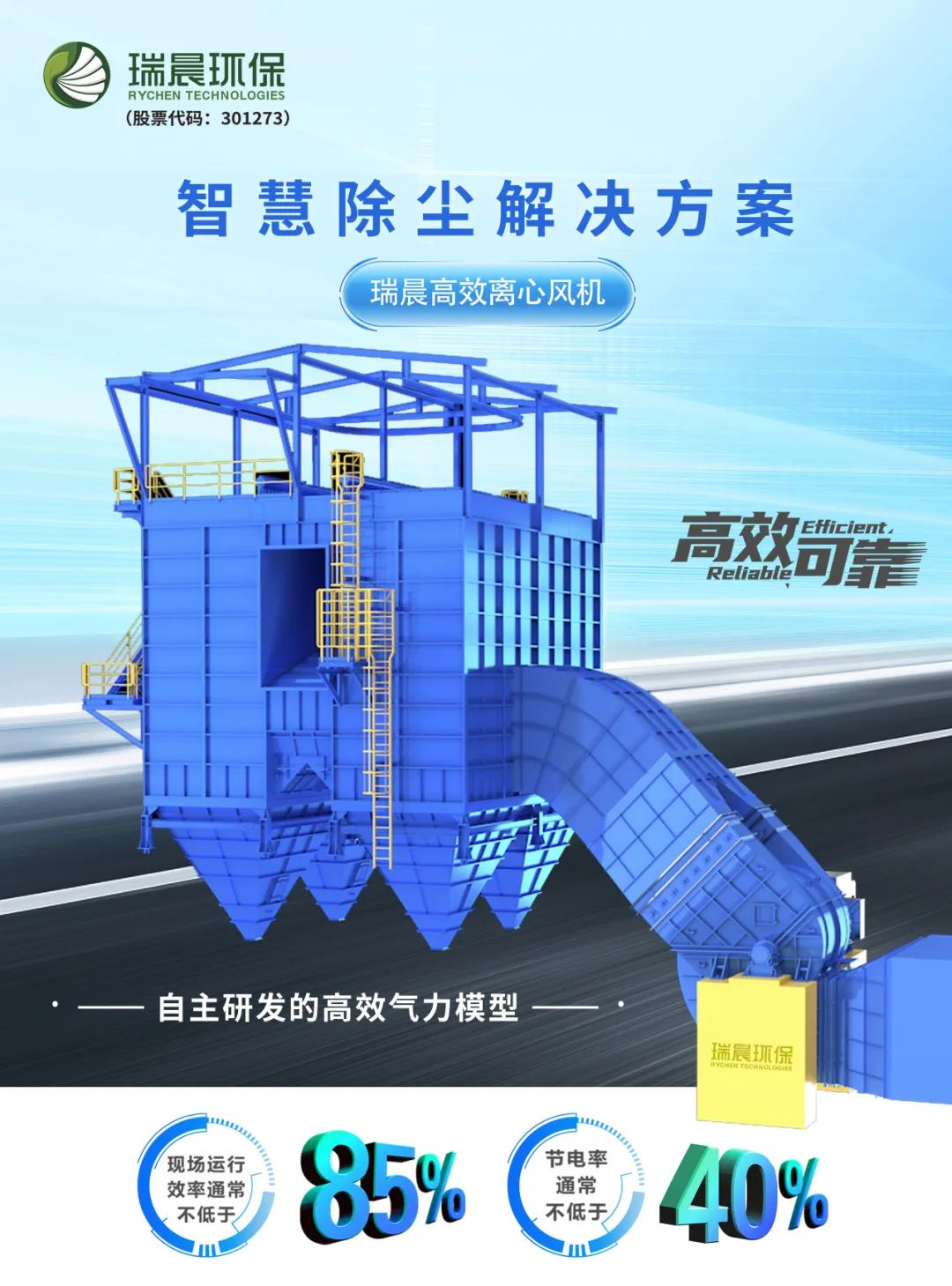 對系統(tǒng)設備運行狀態(tài)進行故障判斷??焖兕A測設備故障情況,精確定位設備故障點位,降低維護工作量,是當之無愧的工業(yè)守護者。智慧除塵解決方案應用瑞晨環(huán)保高效離心風機,其自主研發(fā)的高效氣力模型高效可靠,現(xiàn)場運行效率不低于85%,節(jié)電率不低于40%。