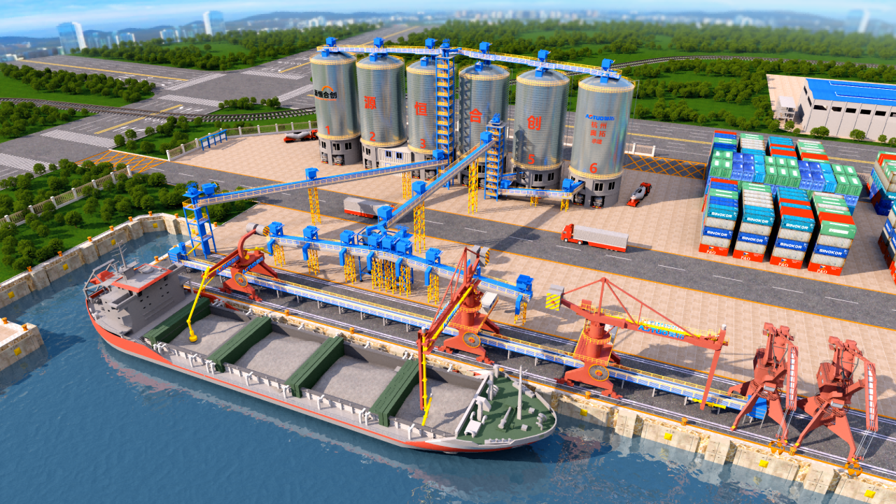 本次中標的粉料倉儲中轉項目,位于中國百年老港、國家4A級物流企業(yè)----山東省龍口港,區(qū)域位置十分優(yōu)越。根據(jù)投資方源恒合創(chuàng)的規(guī)劃要求,本項目配置2臺600噸/小時的環(huán)保型連續(xù)式螺旋卸船機、1臺600噸/小時環(huán)保型裝船機器人與6只總儲量為60000噸粉料儲庫,年中轉能力200萬噸。系統(tǒng)智能化程度高,不僅要實現(xiàn)裝船AI無人作業(yè)、散裝發(fā)放AI智能導引+對準+裝料+計量+收塵等生產(chǎn)線設備運行智能化,還打通產(chǎn)品銷售、庫位管理與財務收付款三個維度,實現(xiàn)“生產(chǎn)控制+產(chǎn)品銷售+財務管理”的數(shù)字化管理。標的項目環(huán)保要求高,每個轉運點均配備高效除塵器,物料輸送全過程進行全封閉處理,旨在打造綠色環(huán)保粉料倉儲中轉的標桿,助力綠色港口建設。