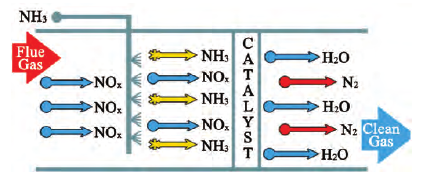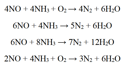 SCR技術大規(guī)模的應用于國內外的電力行業(yè)中,在水泥行業(yè)還未廣泛開展應用。SCR是利用NH3與NO反應的選擇性,選擇合適的催化劑,在350~400℃時,在催化劑表面將富氧煙氣中的NO還原成N2和H2O如圖1所示。SCR化學反應與SNCR是一樣的,只是降低了反應溫度,提高了脫硝效率。主要反應如下: