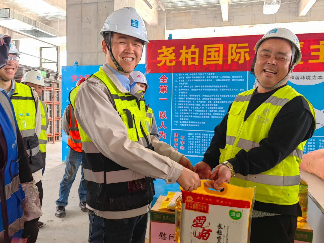 活動中,項目精心準備了慰問品,特別感謝一線工友們的艱苦奮斗和辛勤付出,并向奮戰(zhàn)在施工一線的全體建設者致以崇高的敬意和誠摯的問候。