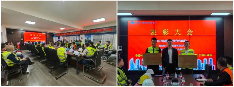 為總結經(jīng)驗、表彰先進,項目部專門召開2023年項目建設總結表彰大會,對表現(xiàn)突出的合作單位和建設個人進行表彰,2家分包合作單位、5名工友、4名管理人員獲得榮譽。