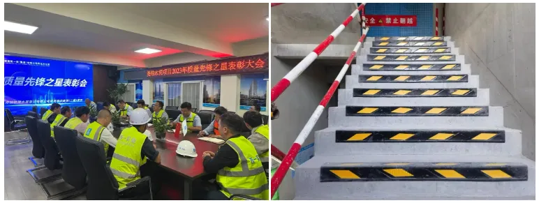 項目嚴格執(zhí)行樣板等五項制度,堅守質(zhì)量底線,狠抓精細化管理。事前進行交底預控避免質(zhì)量隱患,事中跟蹤指導化解質(zhì)量問題,事后復盤總結提升質(zhì)量水平,對觸碰質(zhì)量紅線行為進行嚴肅處罰,同時開展“質(zhì)量先鋒之星活動”,對優(yōu)秀班組和質(zhì)量先鋒之星進行正向激勵,保證施工全過程符合質(zhì)量標準。