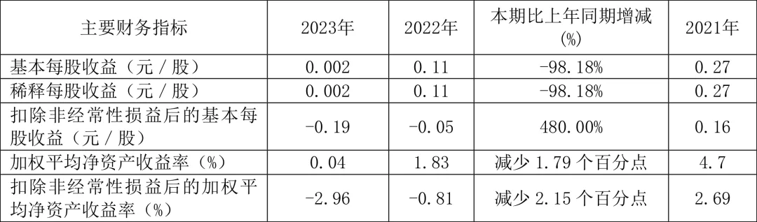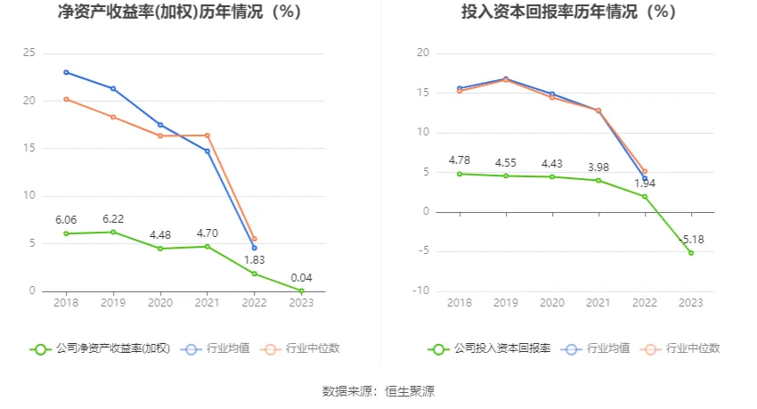 數(shù)據(jù)顯示,2023年公司加權平均凈資產(chǎn)收益率為0.04%,較上年同期下降1.79個百分點;公司2023年投入資本回報率為-5.18%,較上年同期下降7.12個百分點。