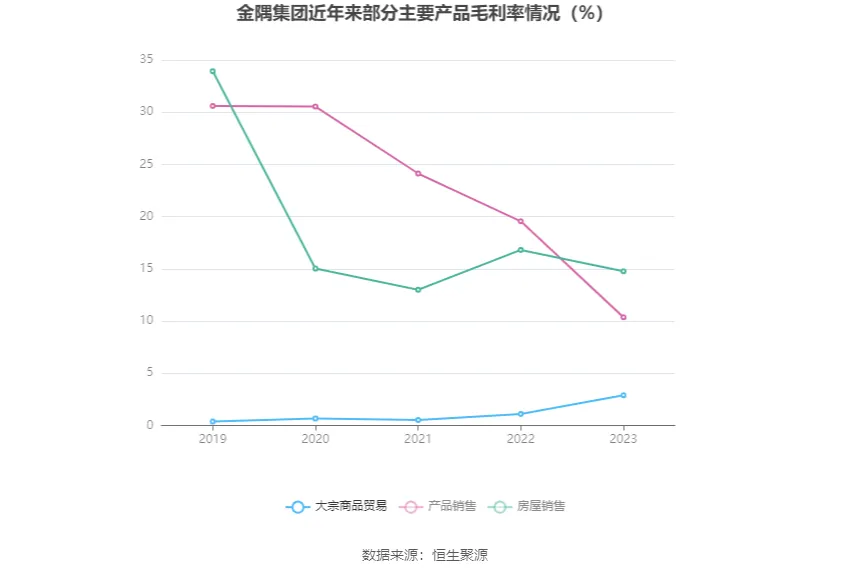 分產(chǎn)品看,大宗商品貿(mào)易、產(chǎn)品銷售、房屋銷售2023年毛利率分別為2.88%、10.35%、14.76%。