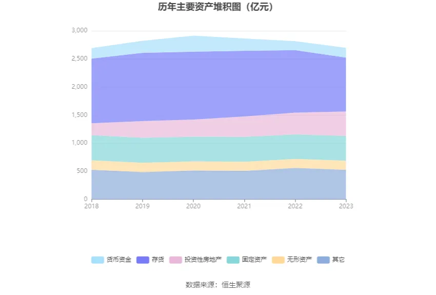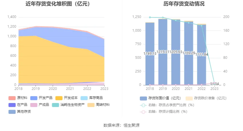 資產(chǎn)重大變化方面,截至2023年年末,公司存貨較上年末減少13.83%,占公司總資產(chǎn)比重下降3.96個百分點;投資性房地產(chǎn)較上年末增加12.83%,占公司總資產(chǎn)比重上升2.44個百分點;固定資產(chǎn)較上年末增加0.98%,占公司總資產(chǎn)比重上升0.84個百分點;貨幣資金較上年末增加8.35%,占公司總資產(chǎn)比重上升0.75個百分點。