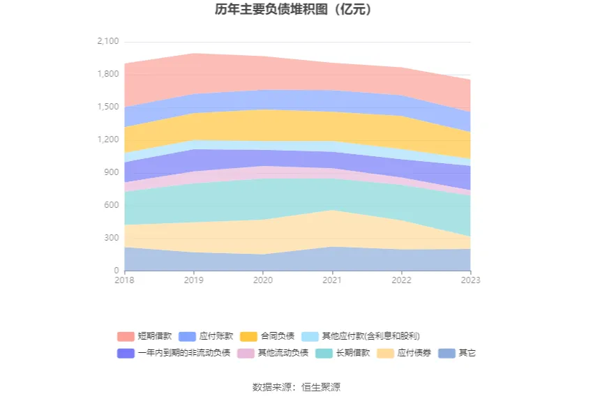 負債重大變化方面,截至2023年年末,公司應付債券較上年末減少58.10%,占公司總資產(chǎn)比重下降5.29個百分點;合同負債較上年末減少19.33%,占公司總資產(chǎn)比重下降1.70個百分點;一年內(nèi)到期的非流動負債較上年末增加33.94%,占公司總資產(chǎn)比重上升2.37個百分點;長期借款較上年末增加15.64%,占公司總資產(chǎn)比重上升2.41個百分點。