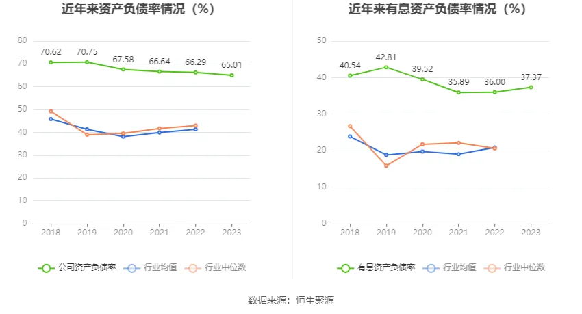 在償債能力方面,公司2023年年末資產(chǎn)負債率為65.01%,相比上年末下降1.28個百分點;有息資產(chǎn)負債率為37.37%,相比上年末上升1.37個百分點。